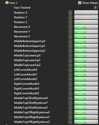 Show Face Data ...defines whether face information is to be supplied. If this box is not checkmarked no face gestures can be tracked.