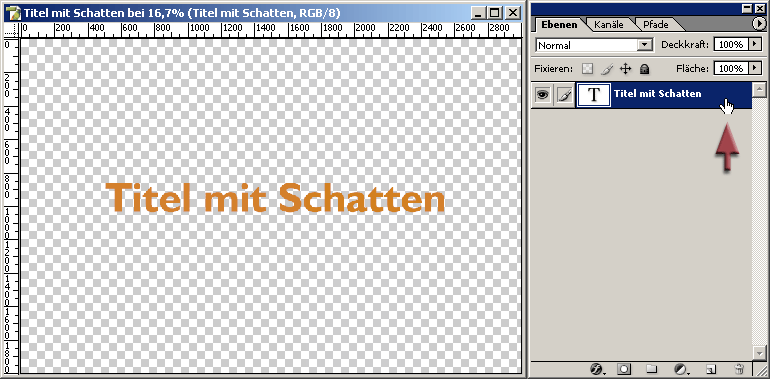 The shadow opacity default setting of 75 % is usually somewhat too dark. To be able to judge the effect better you should add a new layer via Shift + Ctrl + N and choose a color that corresponds more or less to the planned background picture in the show.